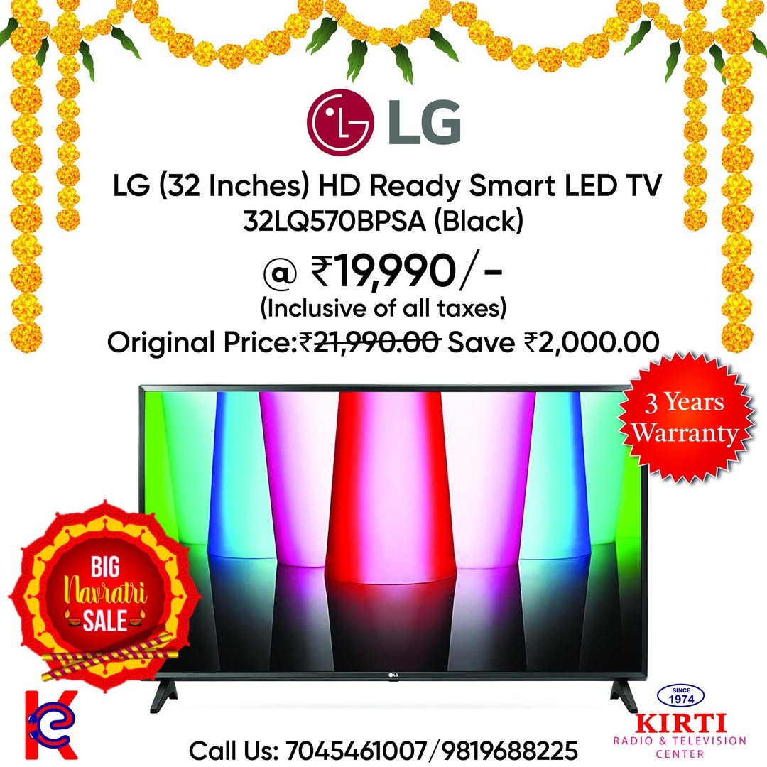 The LG 32-inch HD Ready Smart LED TV brings you sharp picture quality, vibrant colours, and seamless smart features in a compact size that fits perfectly in any room. Powered by an advanced AI processor and webOS, it gives you easy access to all your favourite OTT apps.