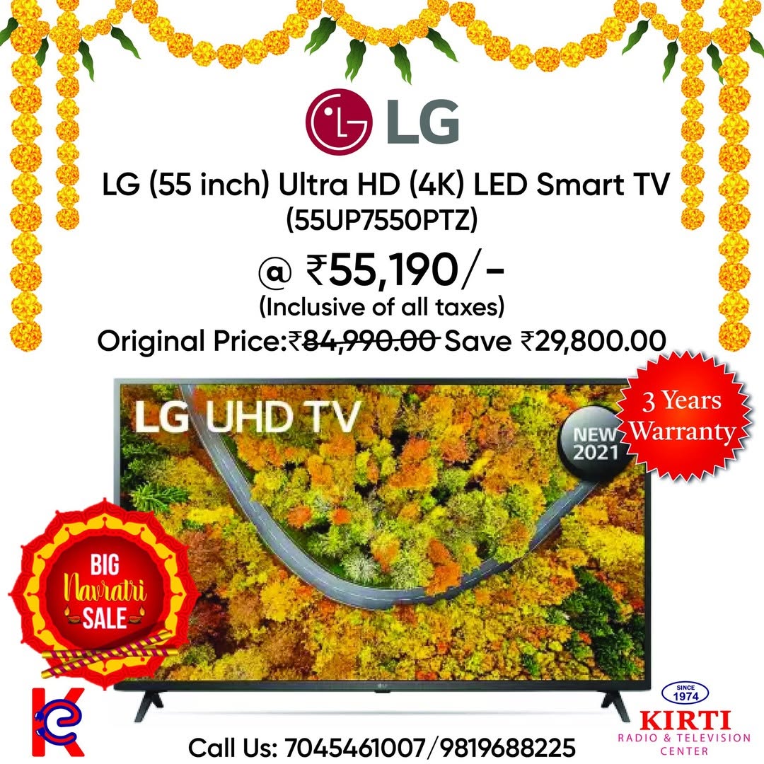 Step up your viewing game with the LG 55-inch Smart LED TV — a size and feature set built for immersive home entertainment with AI-powered picture & sound processing, HDR support and smart connectivity.